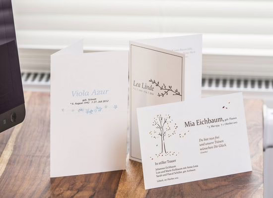 Trauerdruck ist so viel mehr als eine gedruckte Information. Persönlich gestalteter und liebevoll ausgesuchter Trauerdruck kann ein schönes Andenken an einen geliebten Menschen sein den wir nach Ihren Wünschen in unserer eigenen Hausdruckerei erstellen.